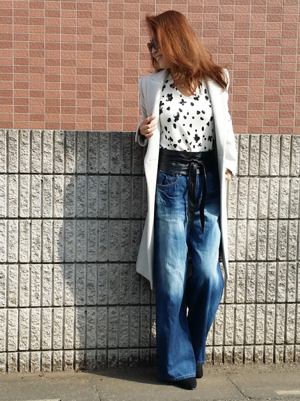 タグの#グレーコートにのっかりまして… 白に近いライトグレーのコートです。