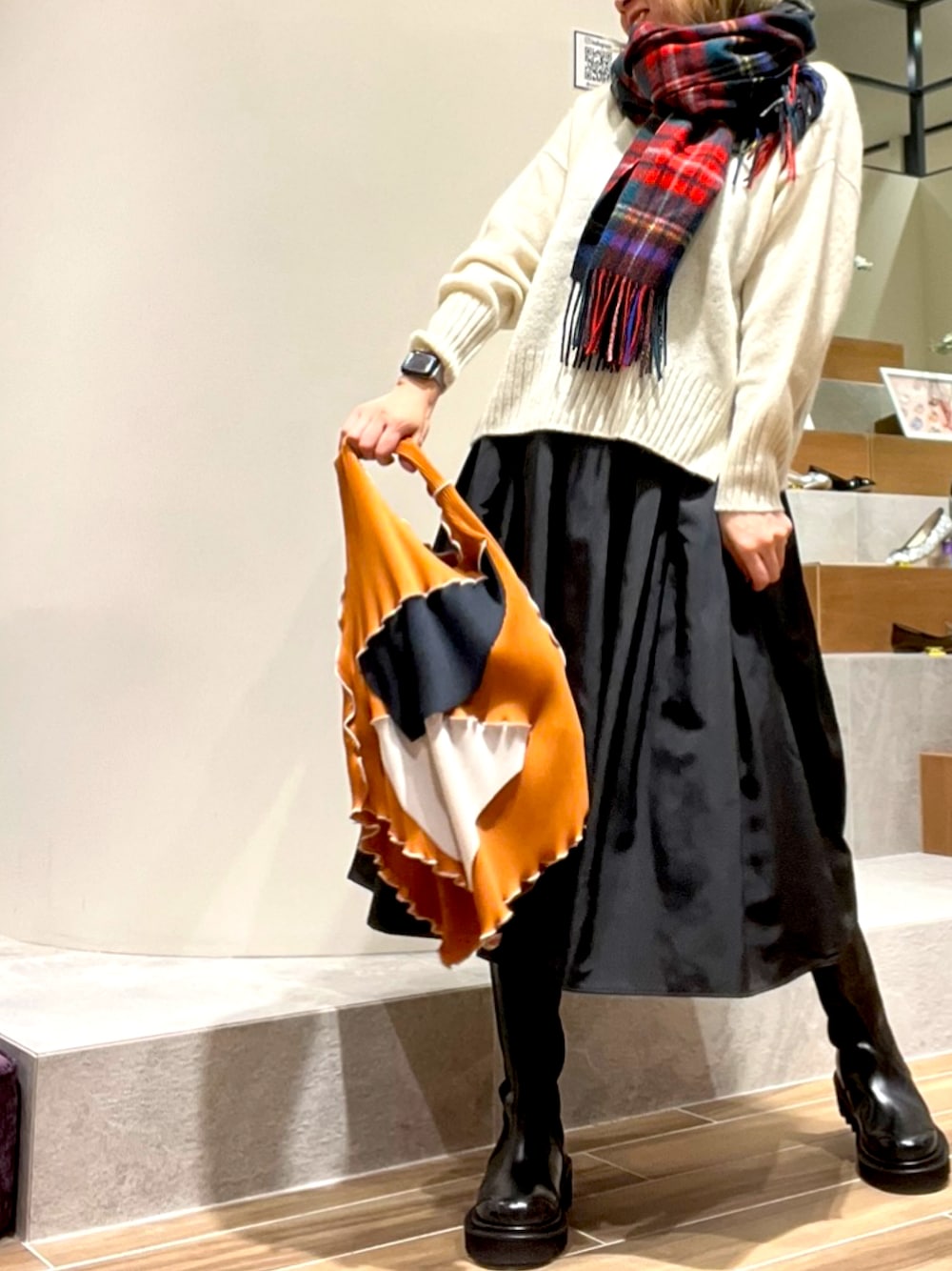 冬のコーディネート楽しい チェック柄のカシミアストール大好き インスタやってます →@knc_jasminspeaks