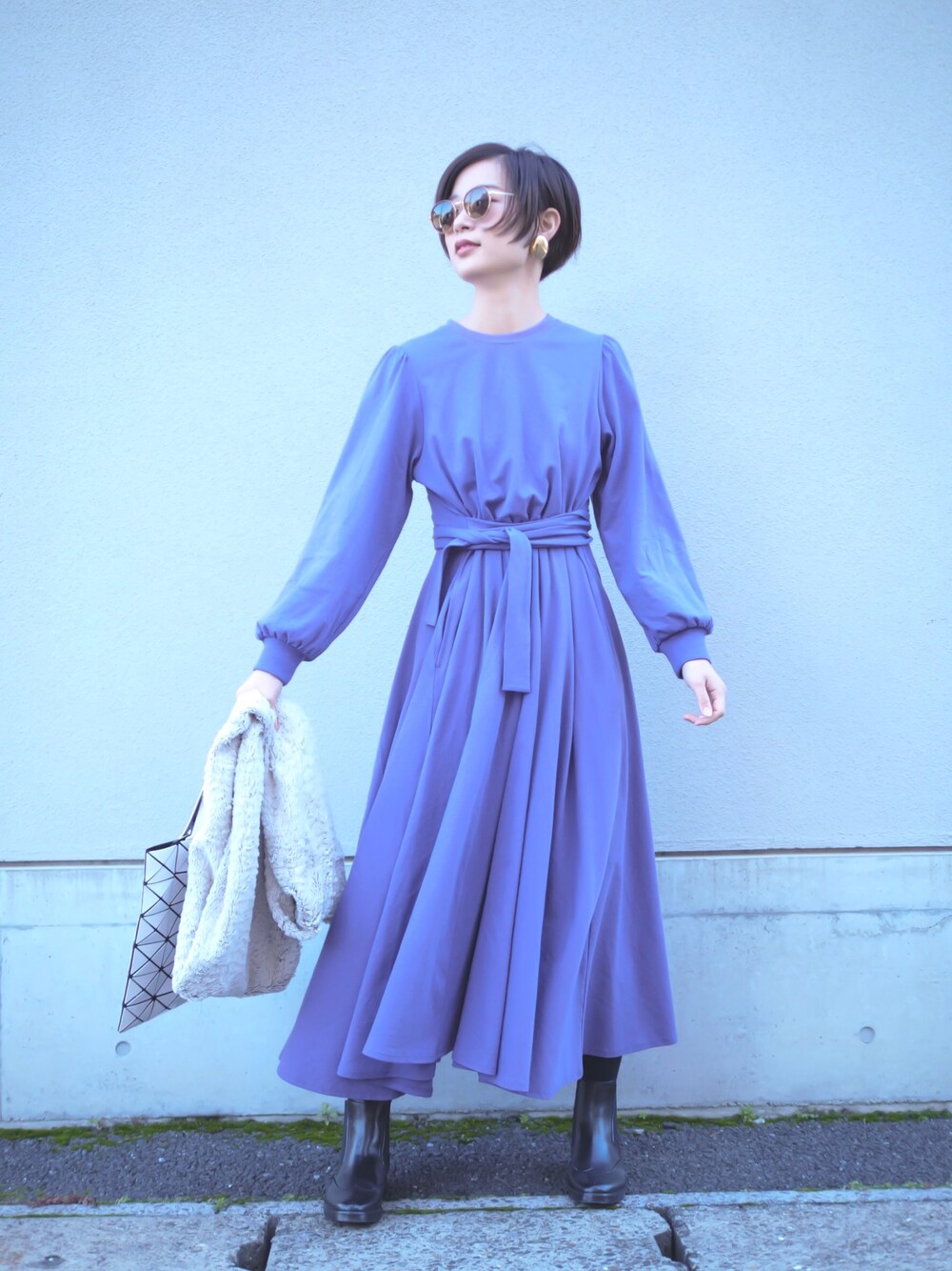 本日のタイトル 『2050年までに火星に移住したいと思っている人』 今にも歌いだしそうな写真だな… 前から気になっていた KBFのワンピース👗 ZOZOの2000円offクーポンで 買っちゃいました(*´-`)ほくほく スカートのシルエット ちょいボリューム袖 ウエストリボン なんともいえないパープル 超絶らくちんカットソー素材 はい、パーフェクト💯 スニーカーと悩んだけど 今回はブーツで合わせてみました(*´-`)