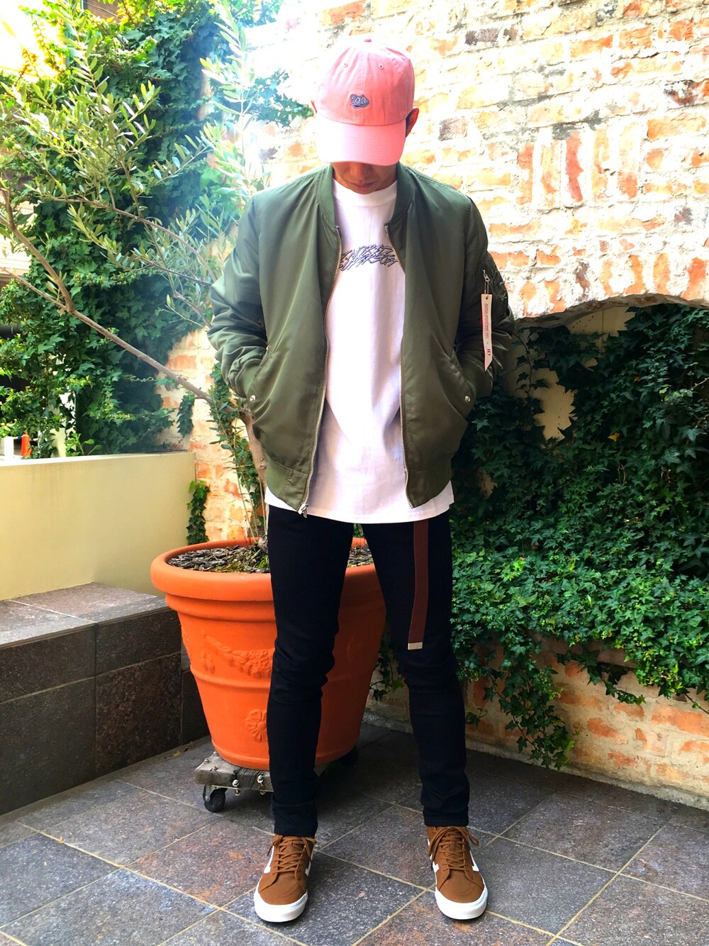 アーバンリサーチの別注アイテムを混ぜたコーディネートです。 ピンクを入れてトレンド感を出しました。