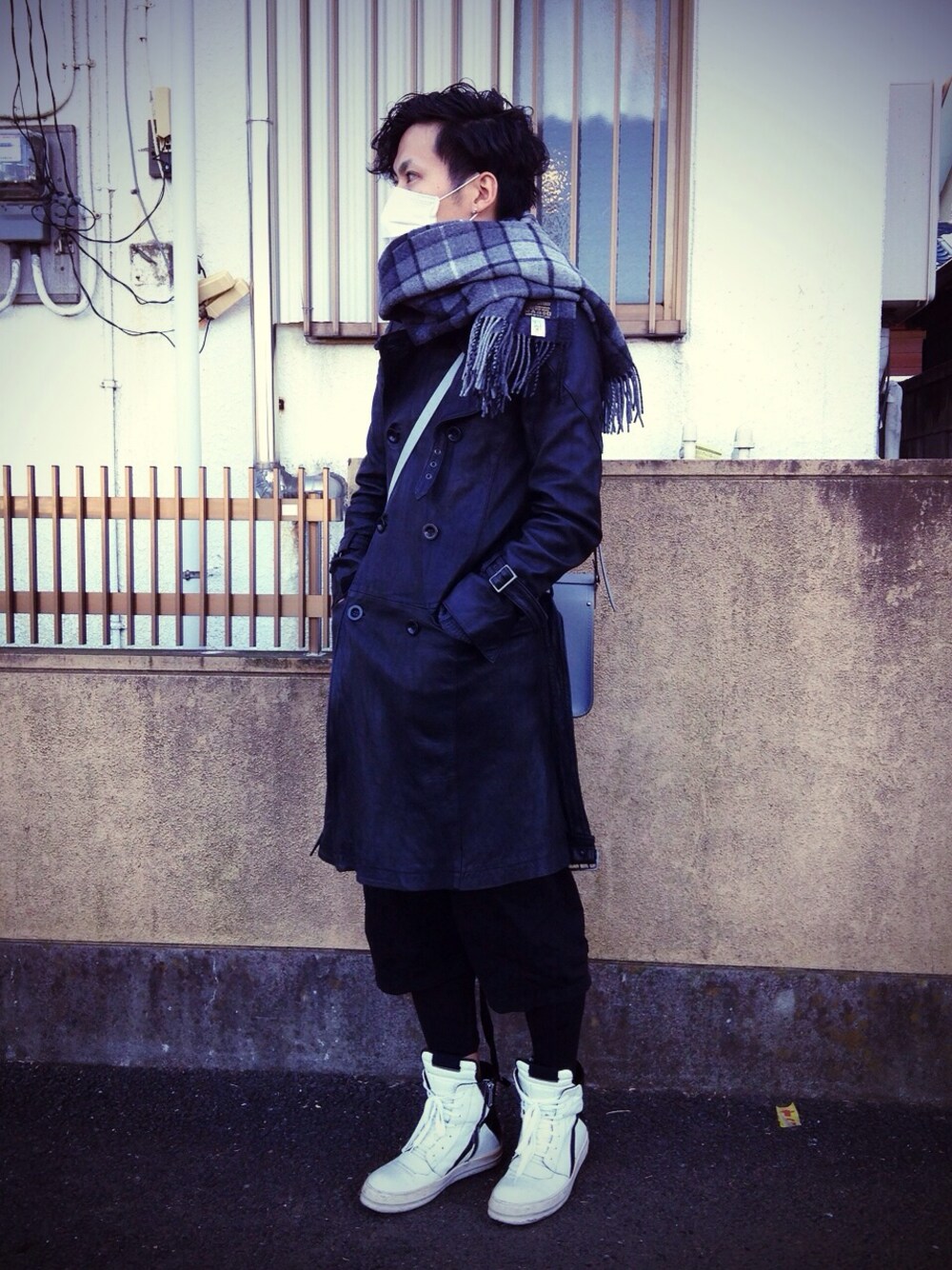 年末っぽくなってきました コート:The Viridi-anne マフラー:GLEN PRINCE パンツ:DRKSDW スニーカー:RICK OWENS バッグ:SATCHEL