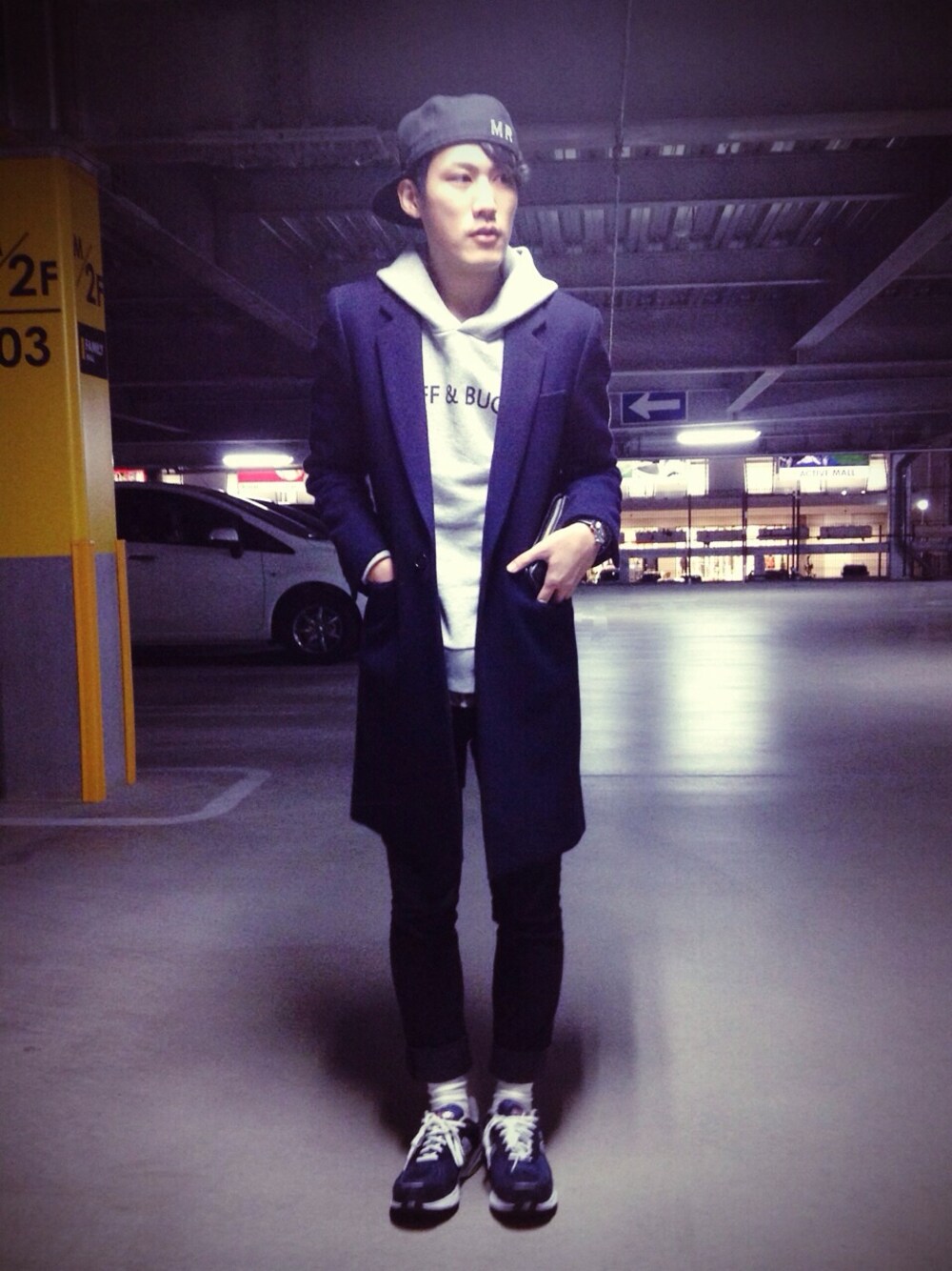 最近ネイビーばかり着ています キャップ:Mr.GENTLEMAN コート:JOHN LAWRENCE SULLIVAN パーカー:.efilevol スニーカー:NEW BALANCE