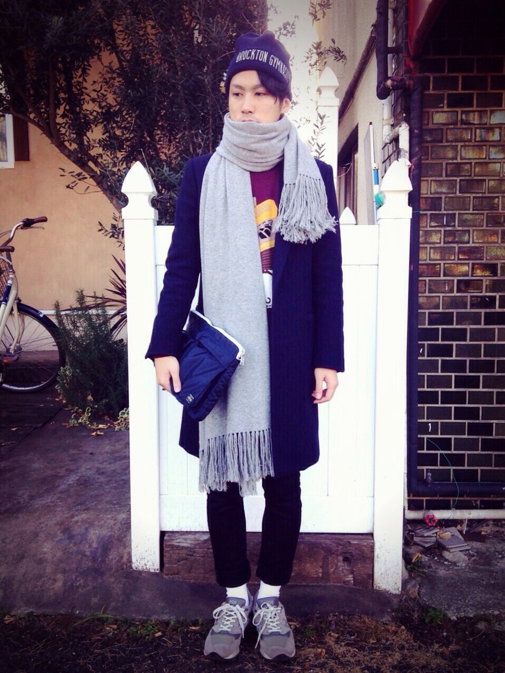 またいつも通りの格好ですね ちょっと前の写真ですけど… ニットキャップ:BROCKTON GYWNASIUM コート:JOHN LAWRENCE SULLIVAN マフラー:AZ ニット:UNDERCOVERISM スニーカー:new balance