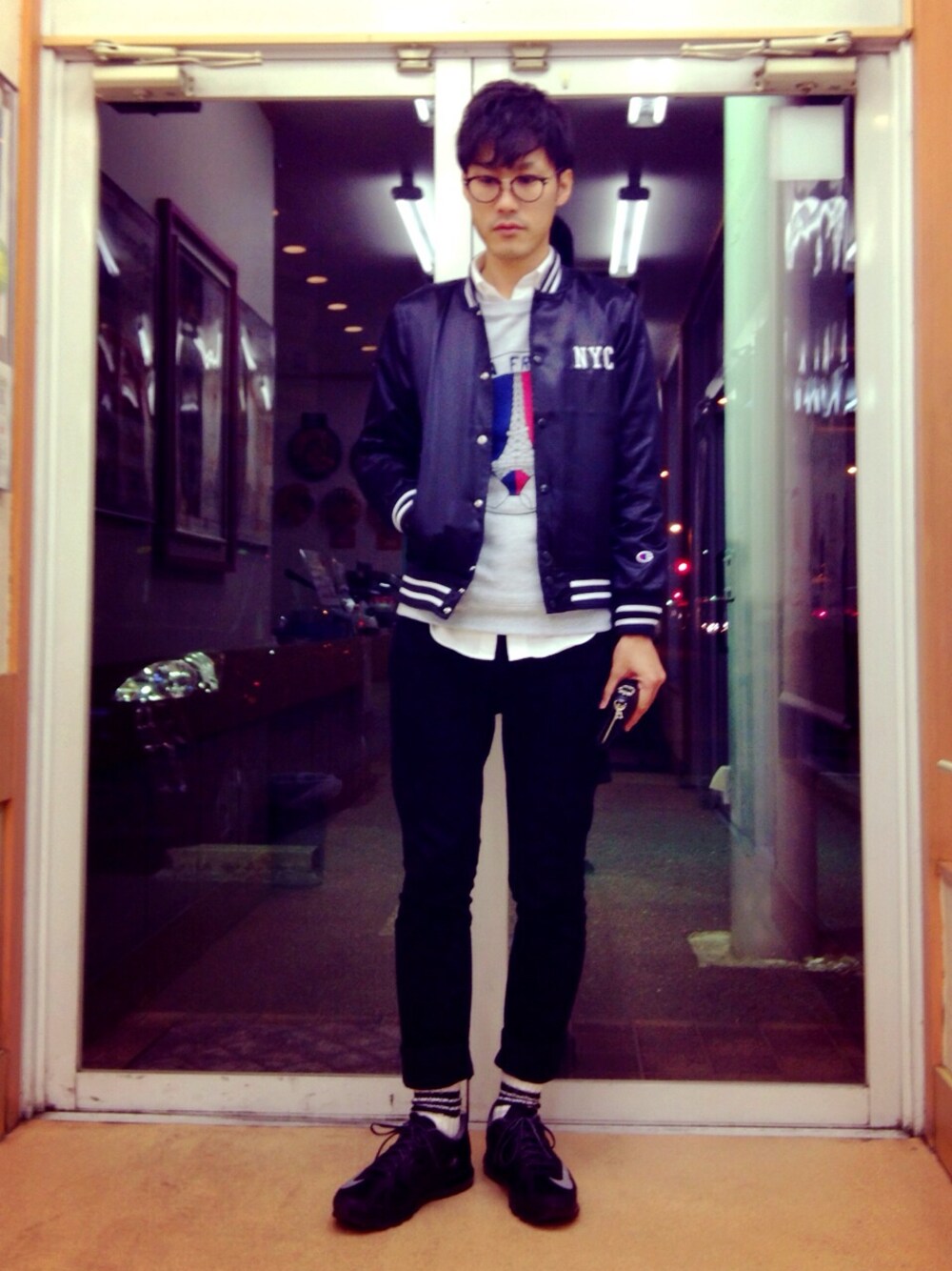izのブルゾン「Champion/チャンピオン×FREAK'S STORE 別注サテンアワードジャケット」を使ったコーディネート