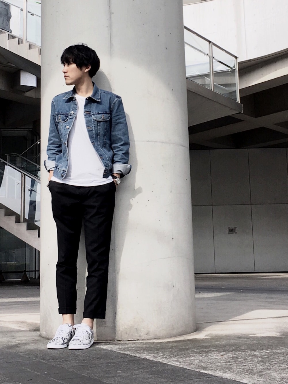 春コーデ A.P.CのデニムジャケットはSでもちょっと大きかった
