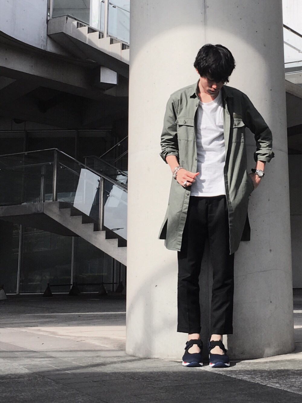 izのステンカラーコート「AMERICAN RAG CIE ファティーグロングシャツ コート【WEB限定】」を使ったコーディネート