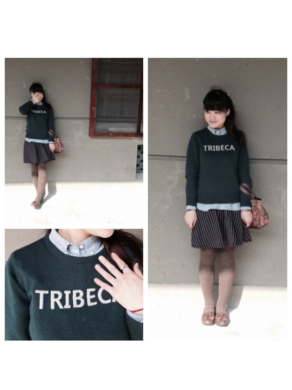 '150118 小文青日,看了迪士尼展 配件: 毛衣 / earth music & ecology 襯衫 / MUJI 裙子 / LOWRYS FARM 褲襪 / MUJI 鞋子 /Olivo牛津鞋