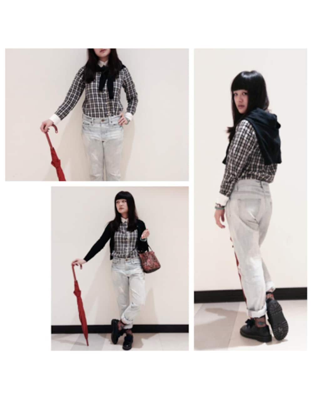 '140501 小帥氣,雅痞風 配件: 針織衫 / Ralph Lauren 襯衫 / LOWRYS FARM 褲子 / LOWRYS FARM 襪子 / 金魚透膚襪 雨傘/ MUJI