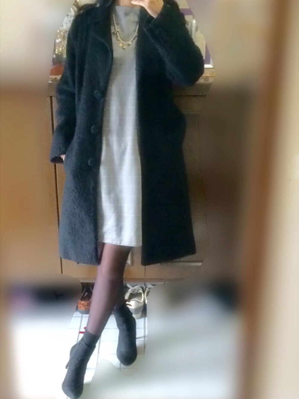 急に寒くなった〜(>_<) ということで、今期初のコート! 母のものなので、 どこぞのブランドだと思います。笑 ボルドーのストール ボルドーのリボン付き靴下 で、カラー合わせました♩