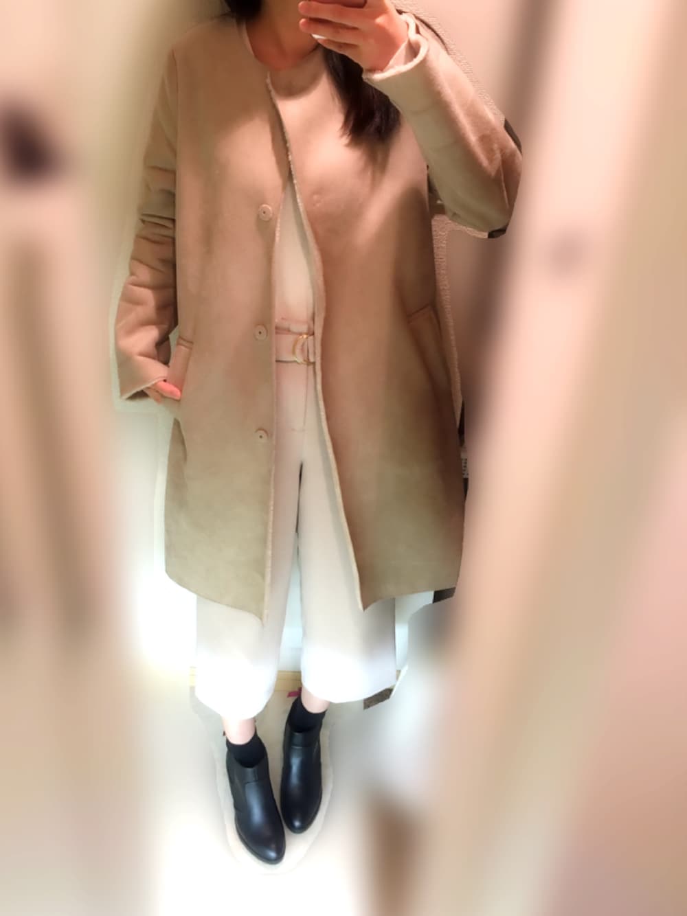 Izumi**のムートンコート「ムートンノーカラーコート」を使ったコーディネート