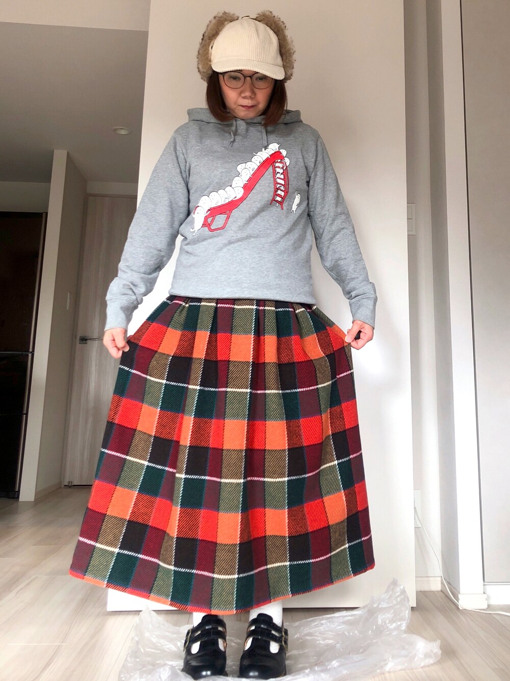 今日のキャラは名前不明だけどグラニフで好きなキャラ🥳 このスカートお気に入りだけど、履けるのもあと少しかなぁ😢