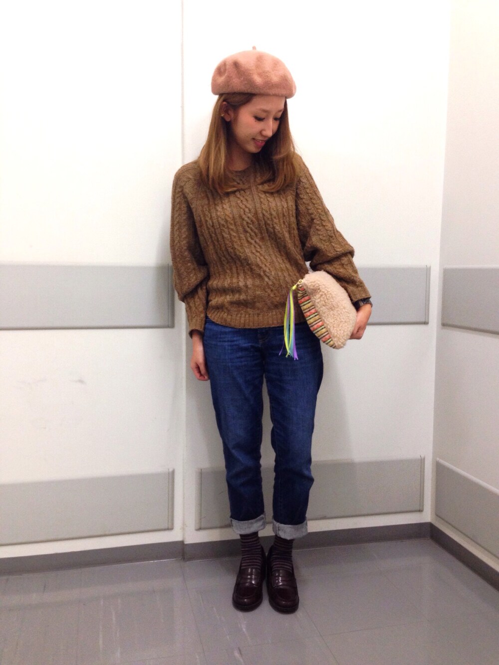 ベレー帽+ローファーでスクールガールっぽく。 ボーダーの靴下はさりげなくお洒落になるから嬉しいですね!