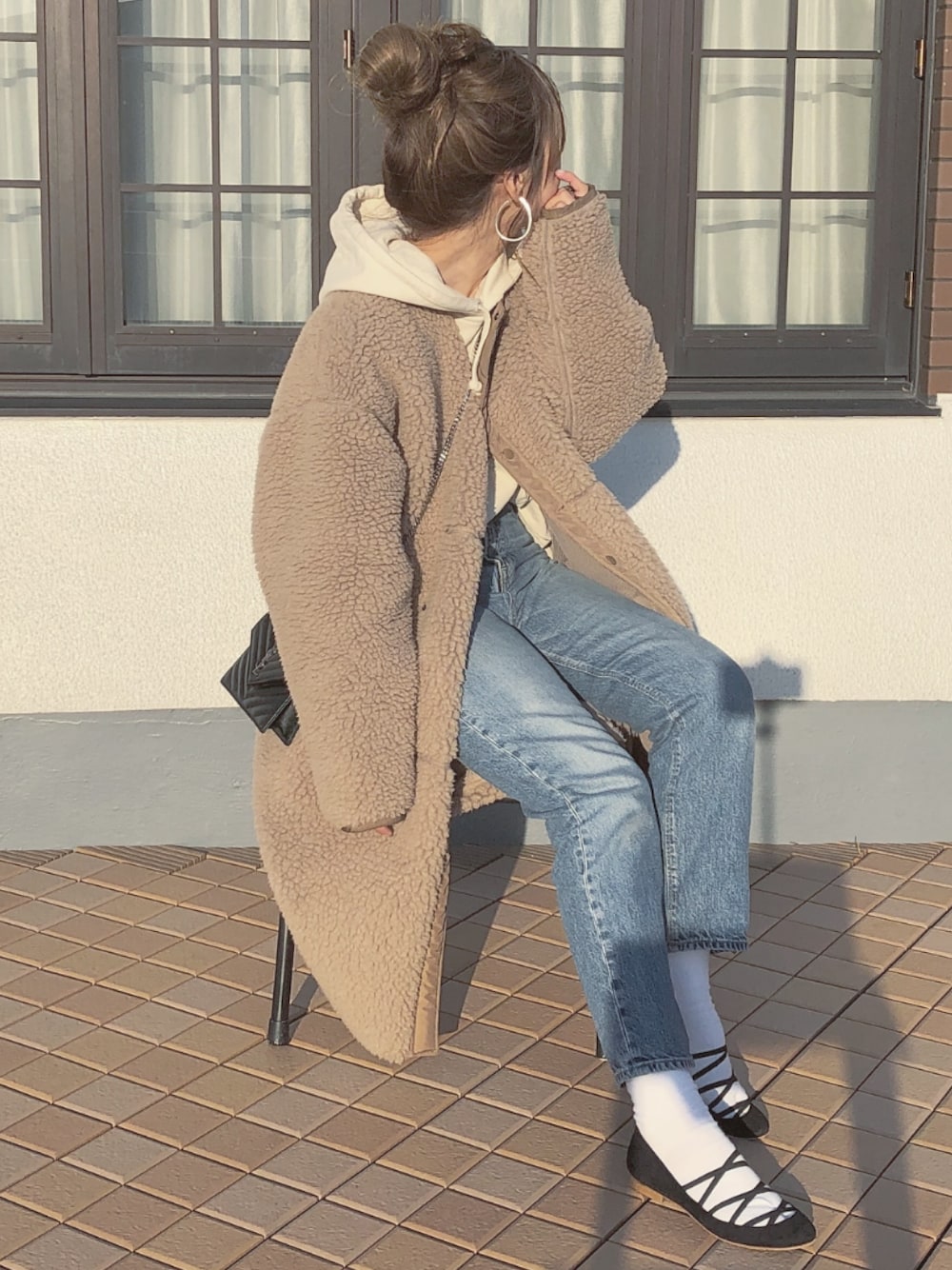 izuminのその他アウター「<HYKE(ハイク)> ボア ロングコート BEIGE■■■」を使ったコーディネート