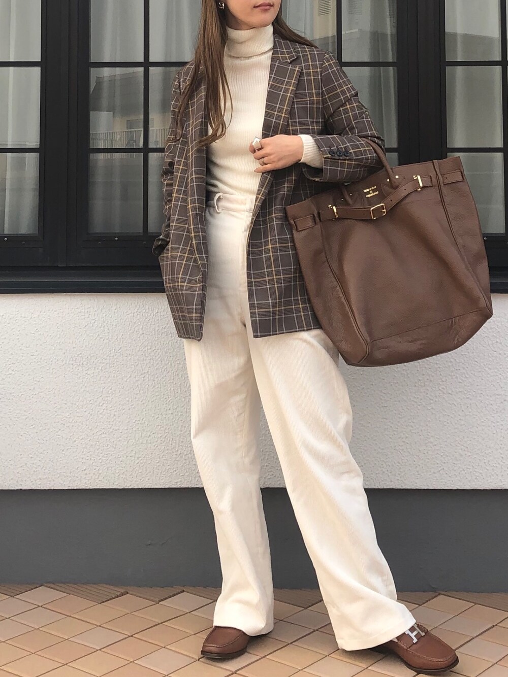 白と茶色のみ🐻 2色で抑えるのってすごい難しい。 けど今はそれが気分♡ Instagram→1102izumin