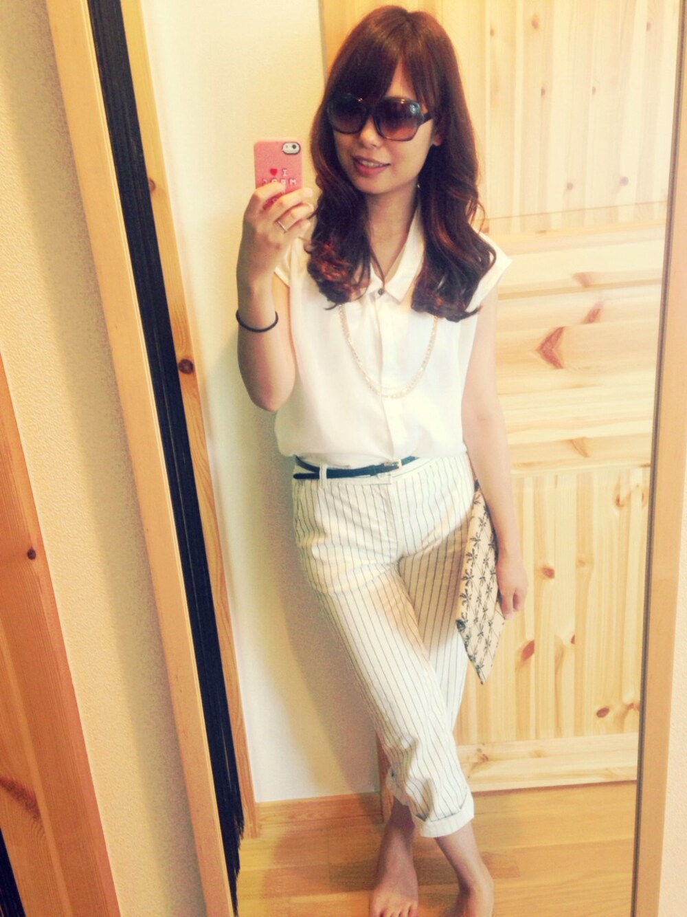 ヤシの木柄クラッチバッグはオシャレな後輩さんに頂いたもの! 旬な柄♡