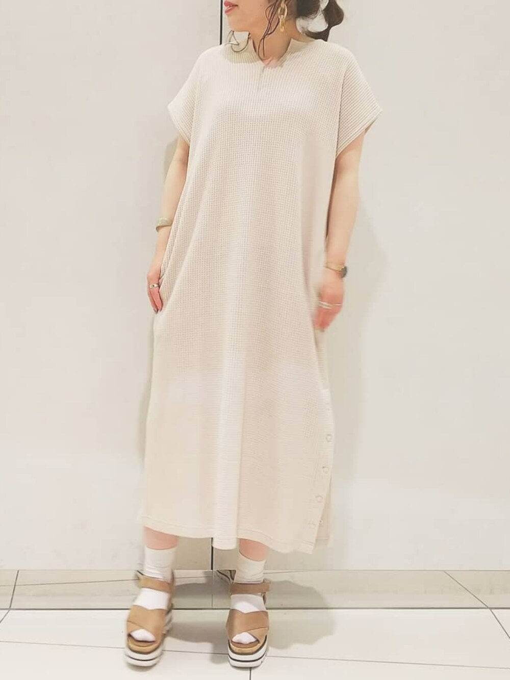 ol_izmm_のワンピース「BIGワッフルキーネックワンピ」を使ったコーディネート