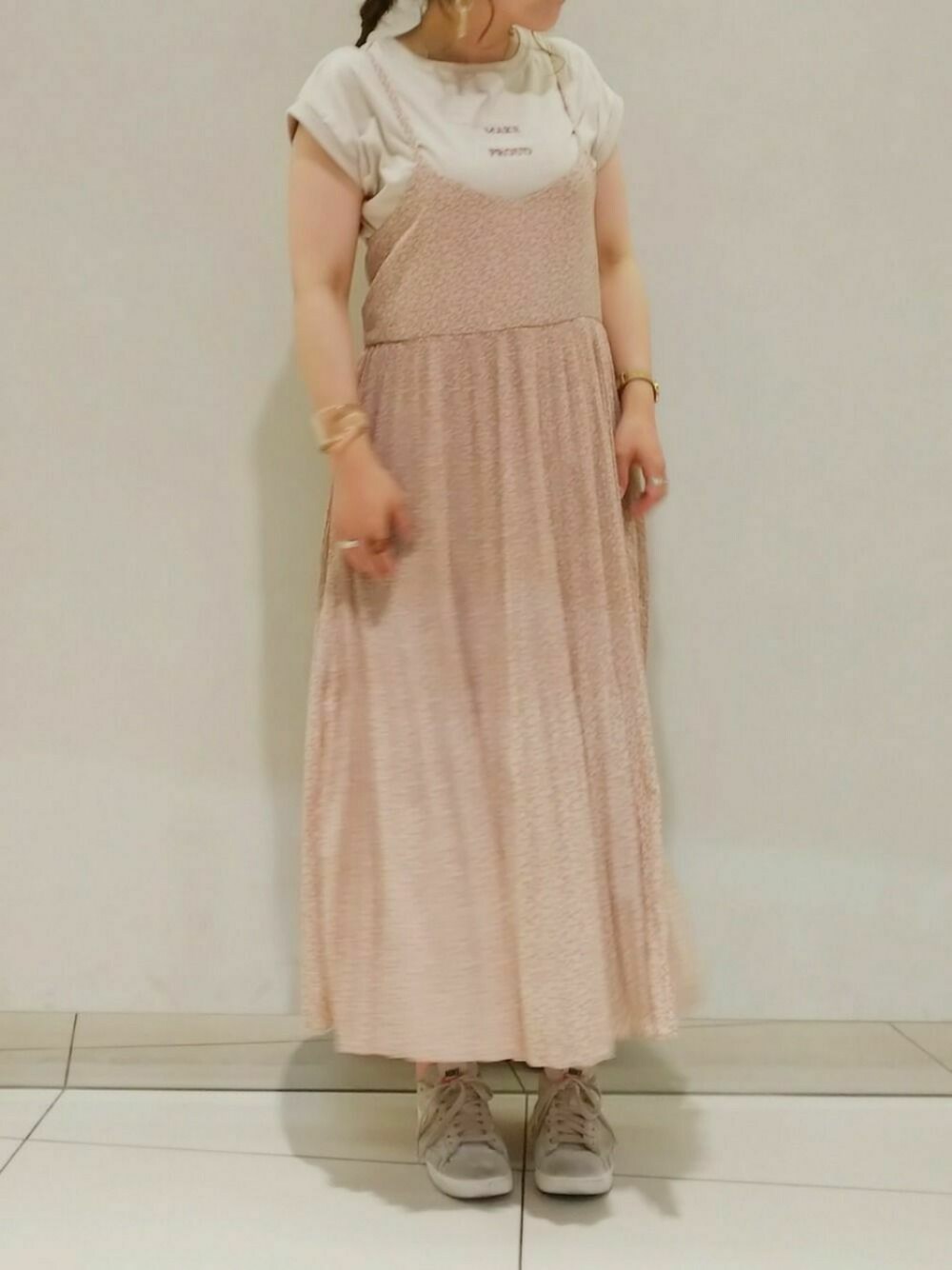 ol_izmm_のワンピース「消しプリーツキャミワンピース」を使ったコーディネート