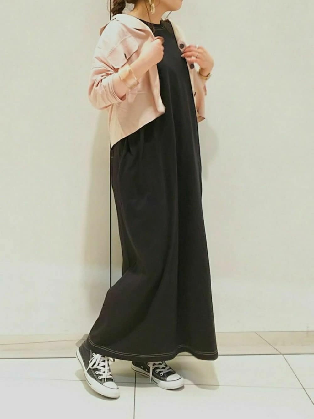ol_izmm_のワンピース「配色ステッチノースリワンピ」を使ったコーディネート