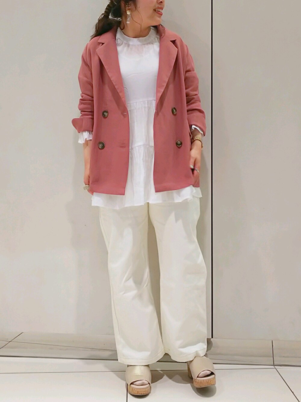 大人かわいいピンクのジャケット♡ ホワイトコーデの差し色にぴったり* Instagram⇒ol_izmm_
