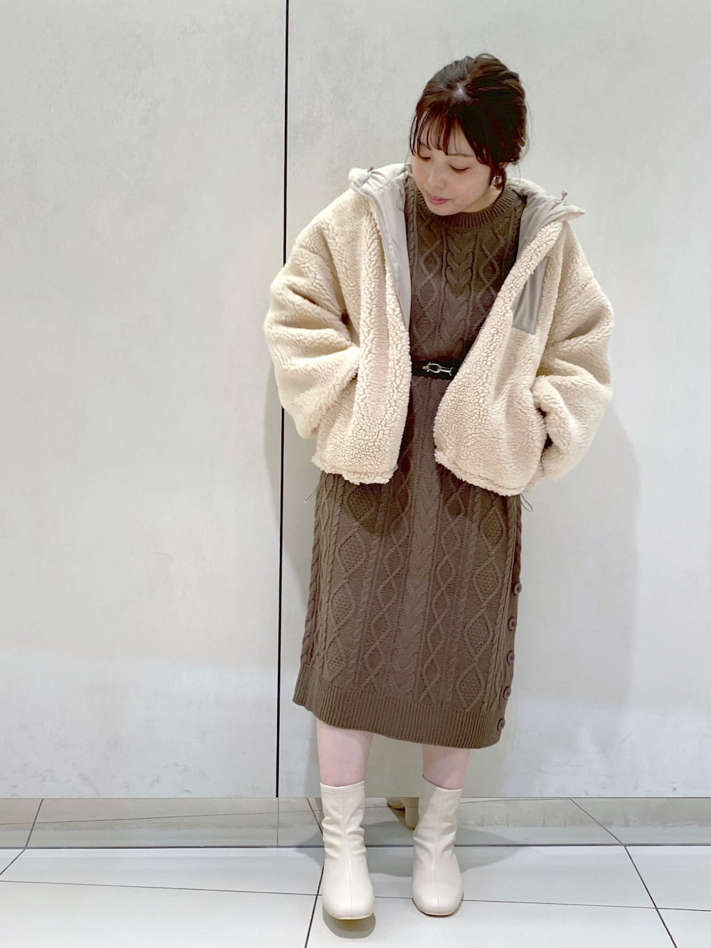 ol_izmm_のワンピース「【人気アイテム再入荷】コスパ神!1枚で着れる!ベルト付ケーブルニットワンピース」を使ったコーディネート