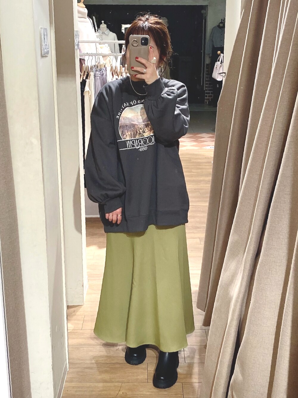 スカートは伸びがある素材で履きやすさ◎‼︎