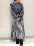 大きなギンガムチェックが目を惹くスカート♡ トップスのブルーは店舗限定カラーです◎