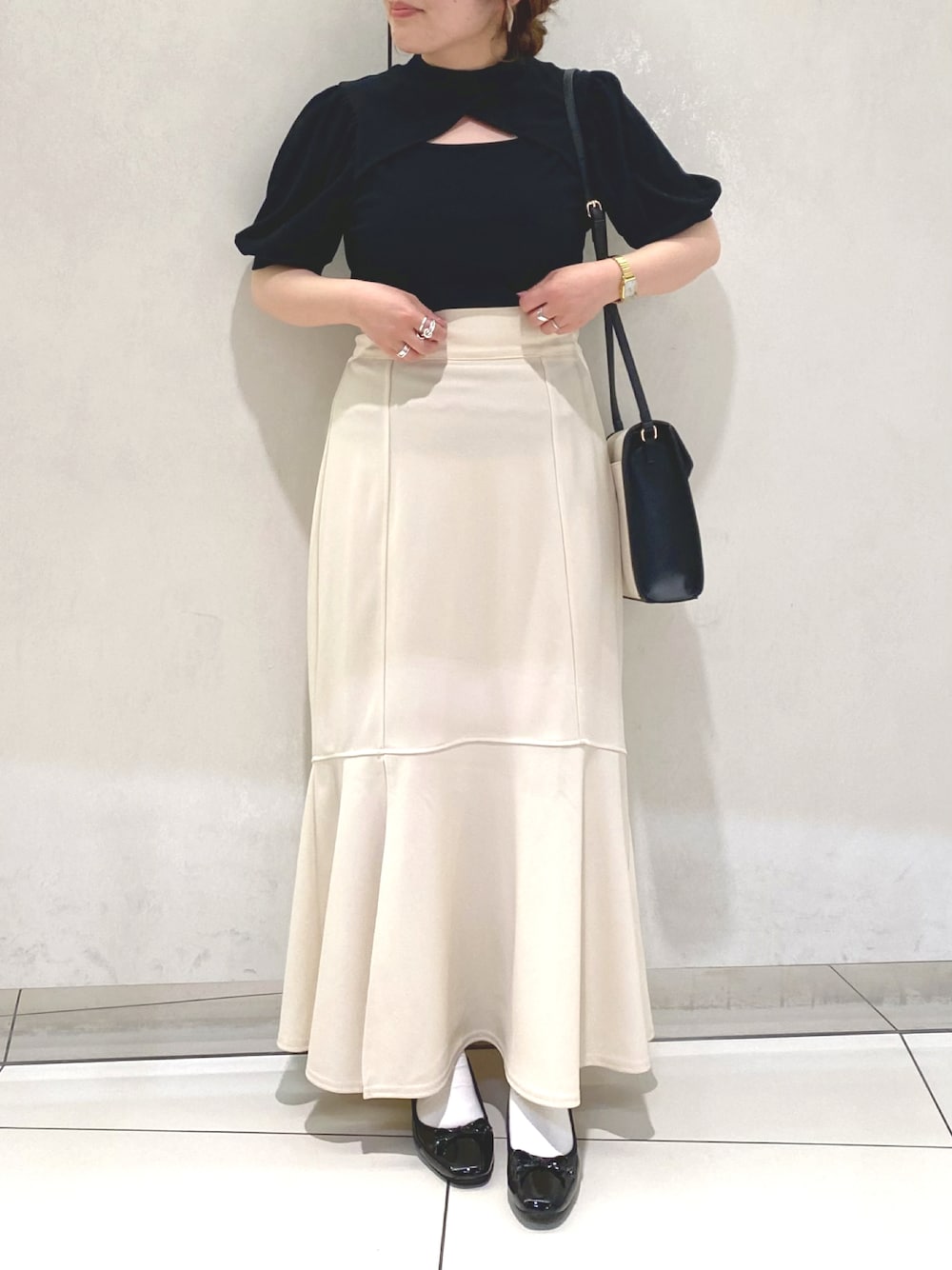 大人気デコルテ見せトップスの 半袖バージョン♡ モノトーンでまとめました◎