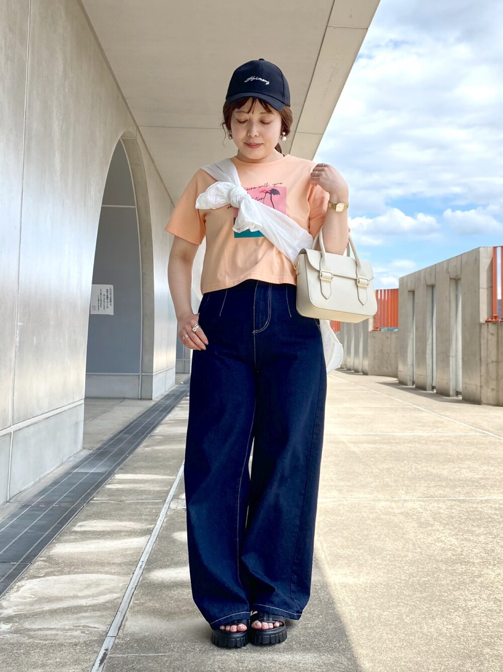 シアシャツセットの着回し♡ オレンジのTシャツを差し色にしました◎