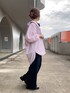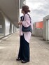 ピンクのストライプシャツを ブラックコーデの差し色にしました◎