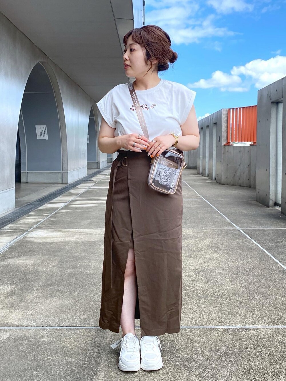 スッキリ見えのTシャツ♡ スリットスカートでオトナカジュアルコーデ◎