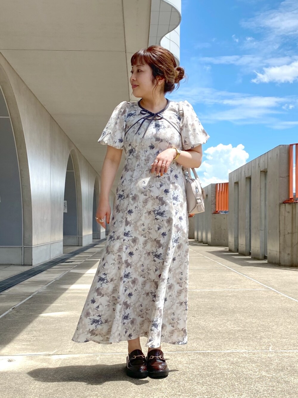 前に載せたワンピースの色違い♡ モヤモヤした柄が大人っぽくてかわいい◎