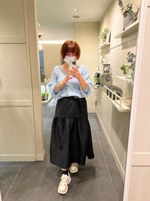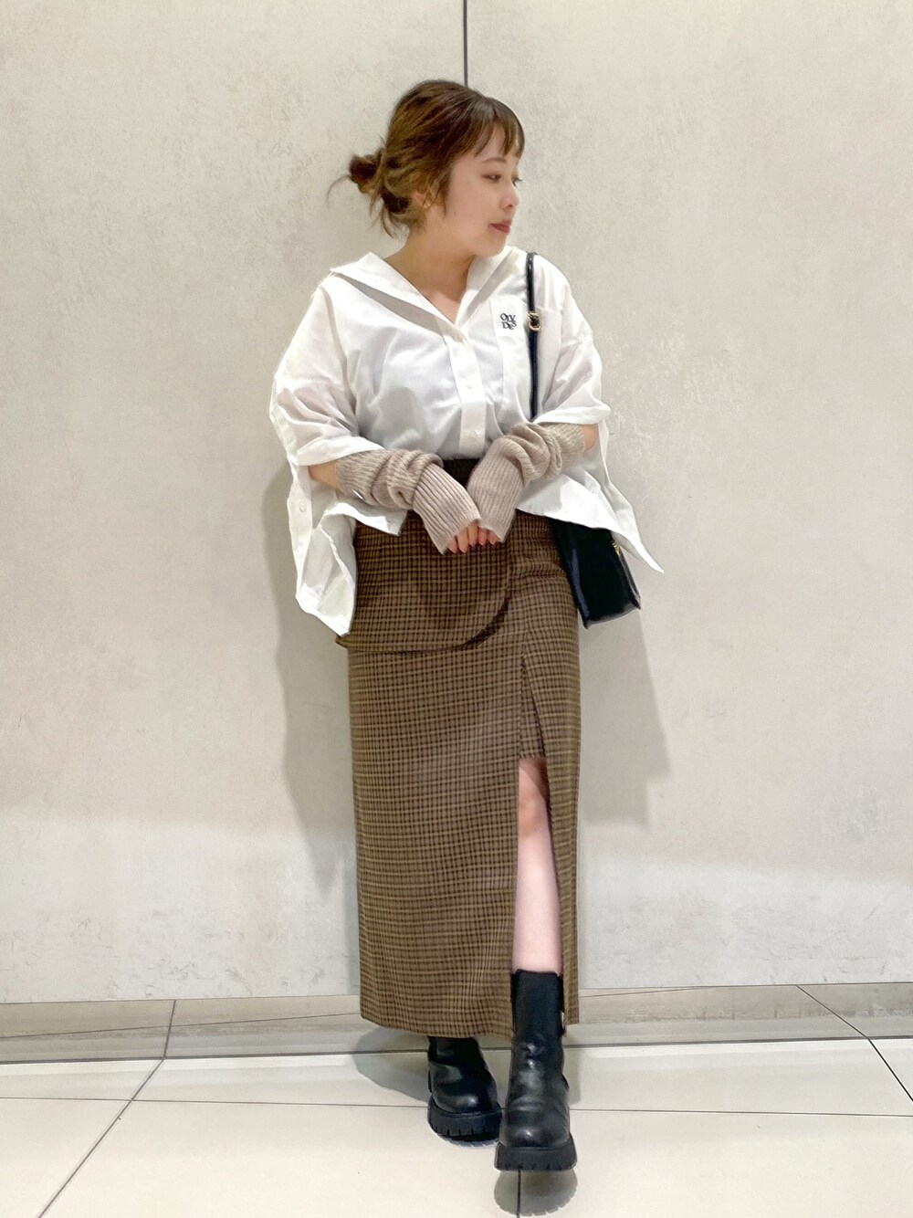 シャツ×スカートのシンプルスタイルに アームウォーマーをポイントにまとめました◎