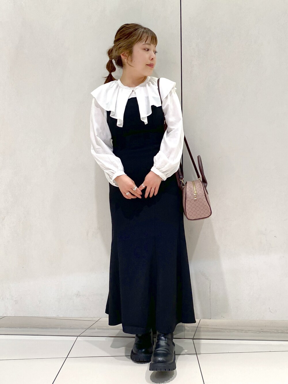ol_izmm_のワンピース「ラッフルカラ―ドッキングワンピース」を使ったコーディネート