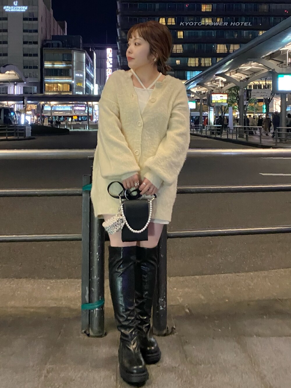 ふわふわカーディガンの着回し♡ 小物はブラックでまとめました◎