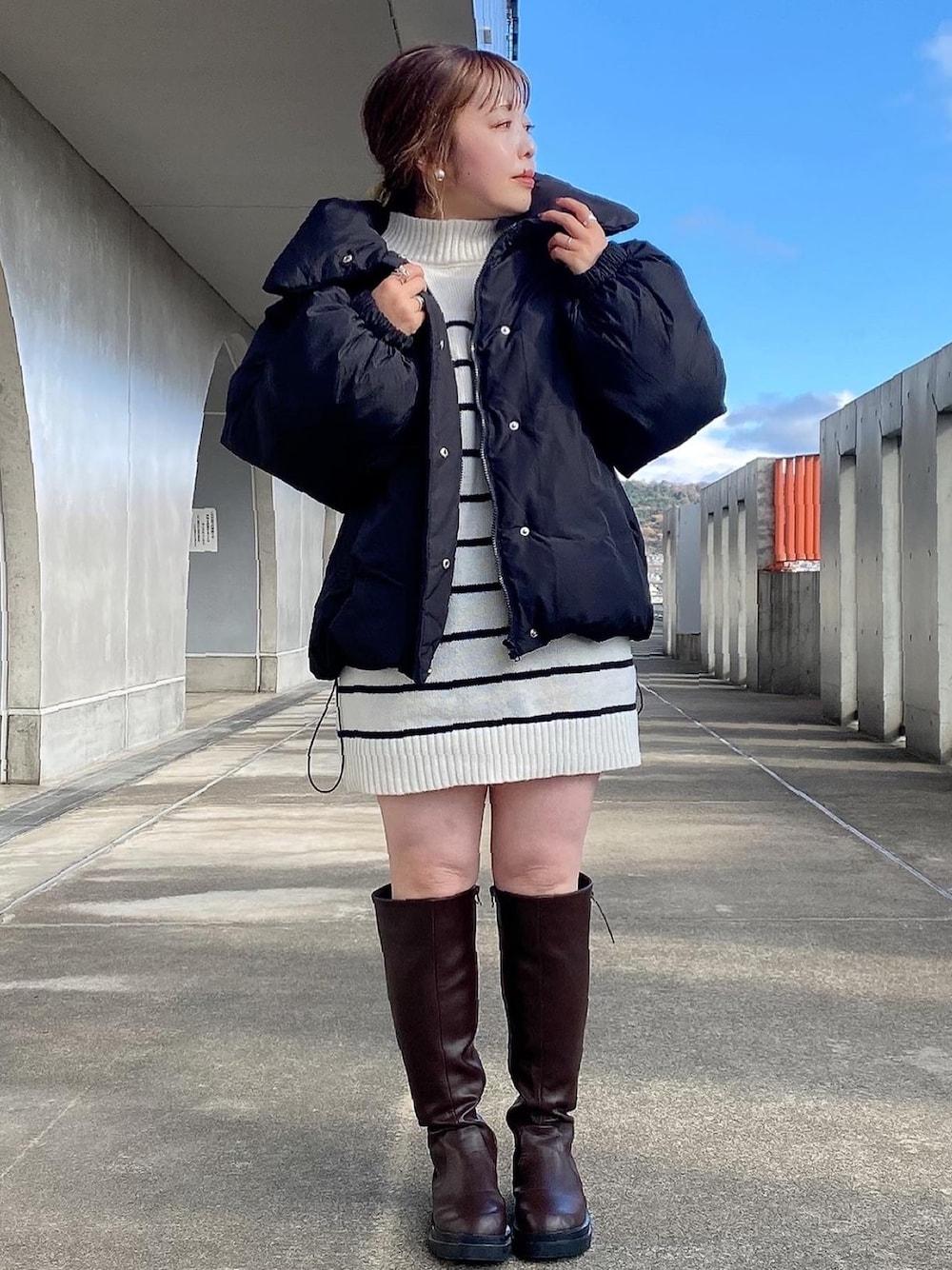 1枚で映えるボーダーチュニック♡ 中綿ブルゾン合わせがオススメです◎