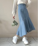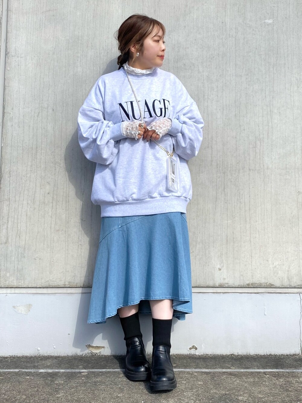 ゆるっとしたシルエットがかわいいスウェット♡ デニム素材のスカートと春っぽく合わせました◎