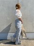 ガーリーなブラウスとカジュアルなパンツの ミックスコーデ♡