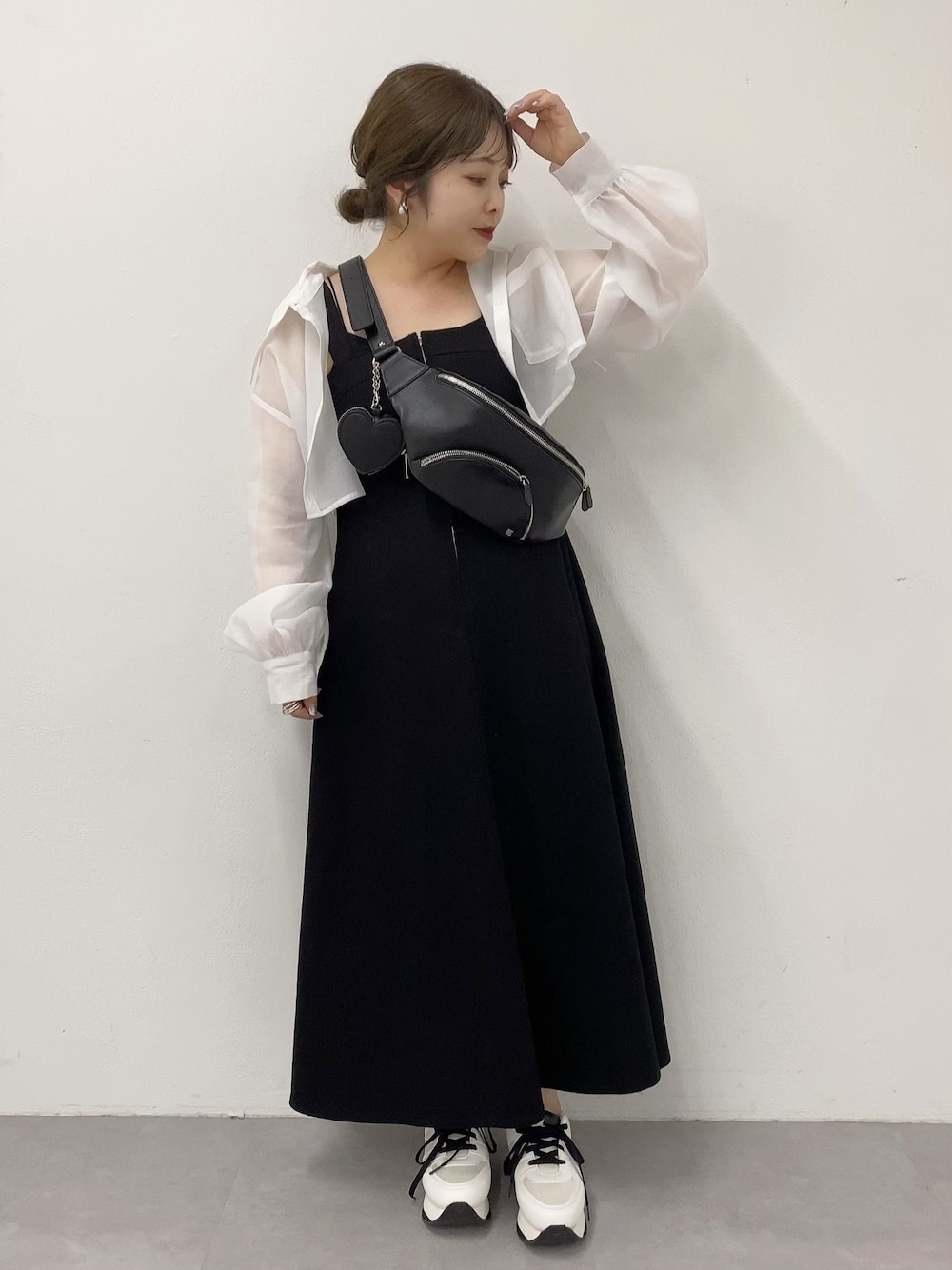 キャミワンピ×シャツのコーデは 安定にかわいい♡ モノトーンでまとめました◎