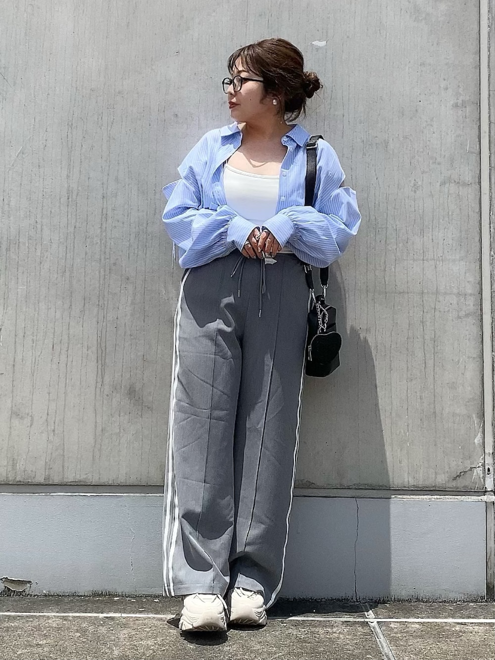これからまだまだ大活躍な長袖シャツ♡ ショート丈でどんなボトムとも相性◎ ラインパンツとスポーティーに合わせました♪