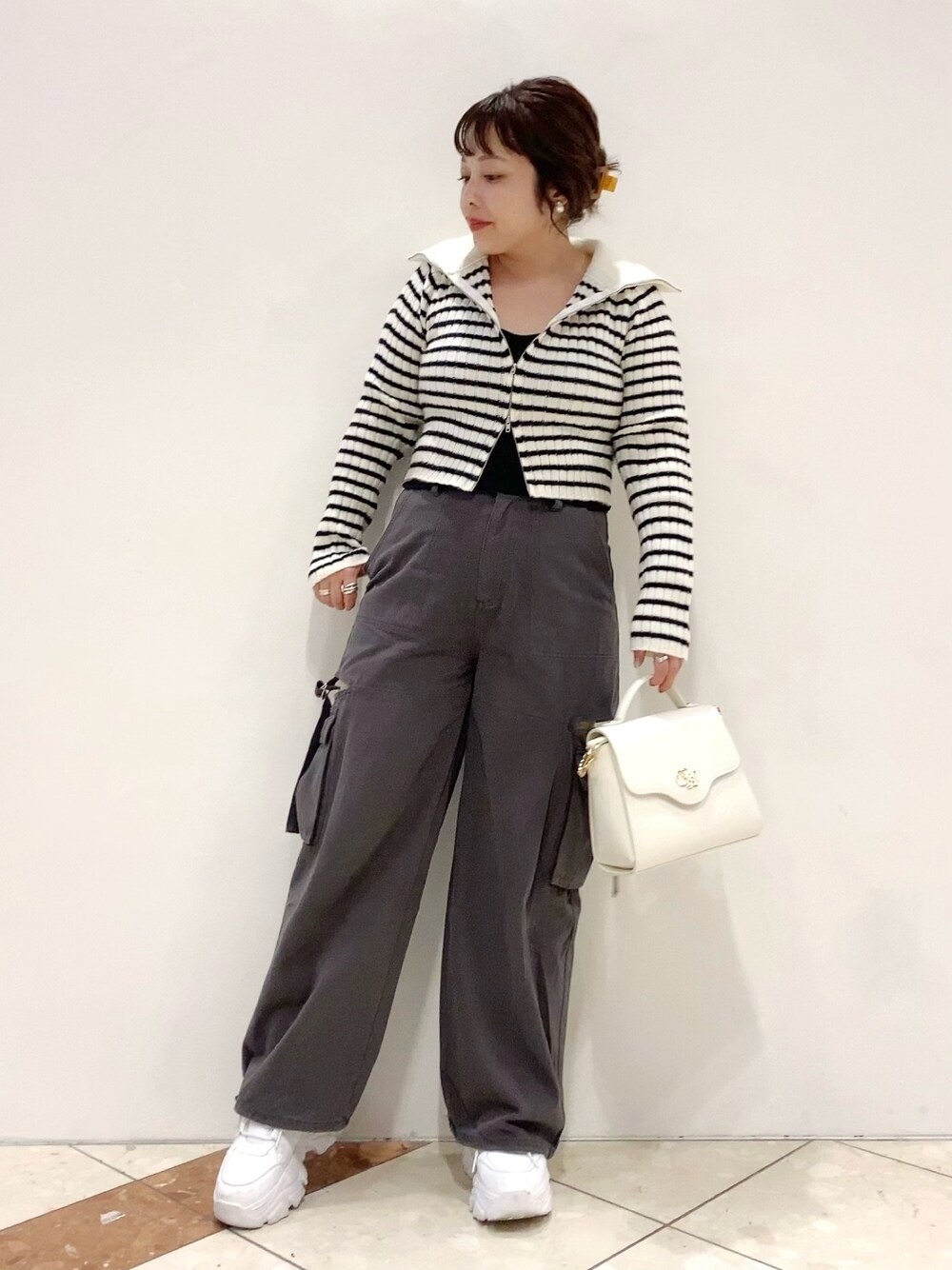 夏から大人気のダブルジップニットが ふわふわな生地で登場しました♡ カーゴパンツとカジュアルにまとめました◎