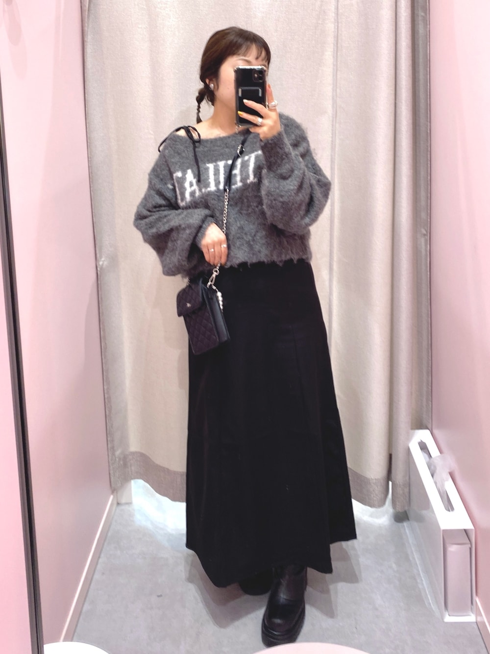 ワンショルで着てもかわいいニット♡ 前回のキャミワンピを着回しました◎