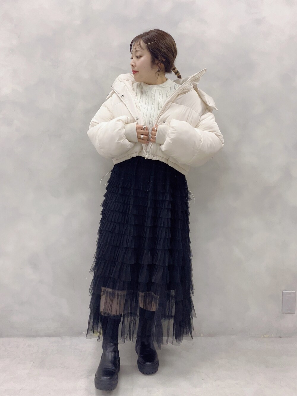 ol_izmm_のダウンジャケット/コート「中綿ショートブルゾン 1032070020」を使ったコーディネート