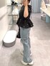 大人気のハート刺繍ブラウス♡ デニムとスッキリ合わせました◎