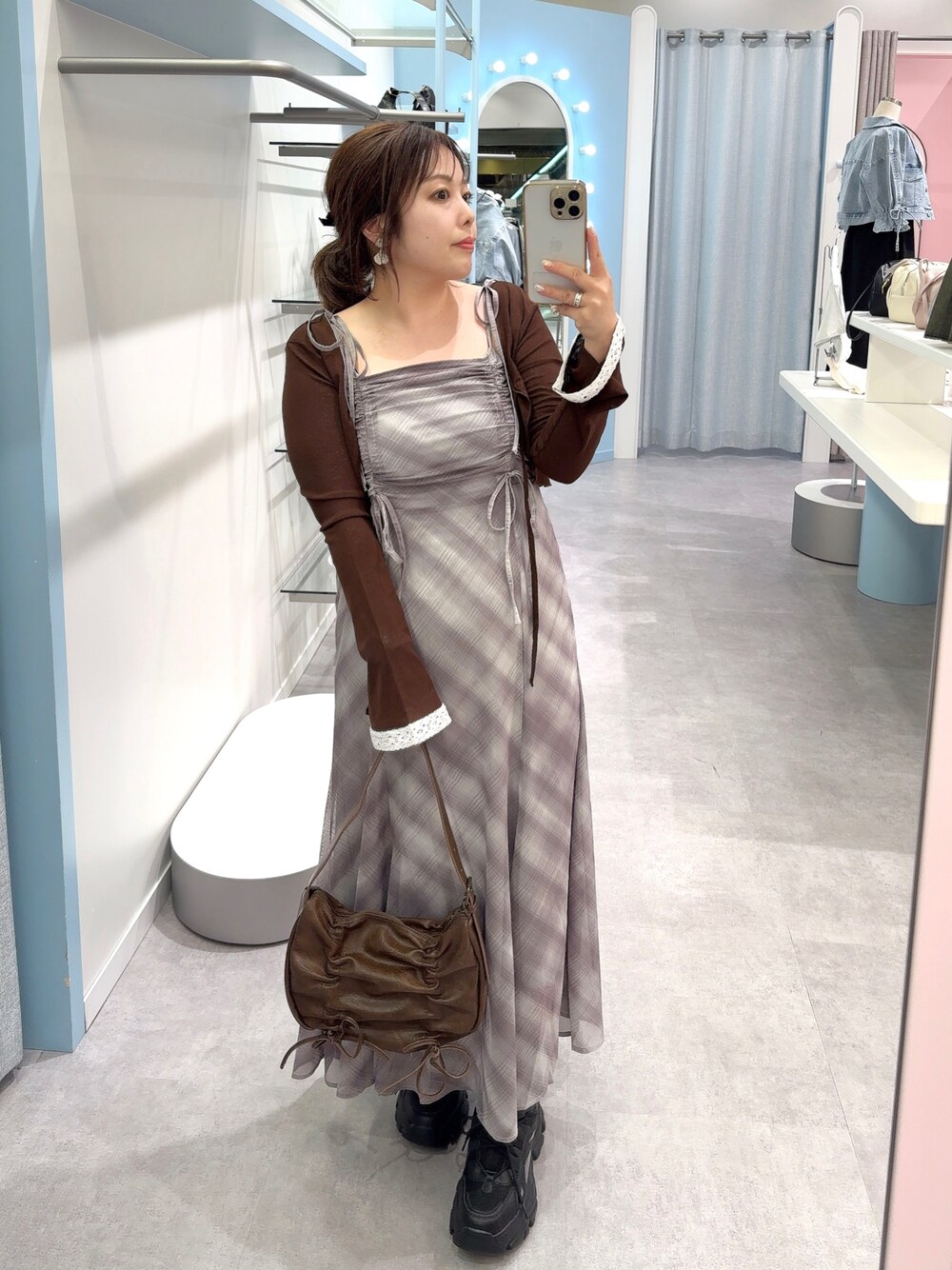 マーメイドシルエットがキレイなワンピース♡ ブラウンでまとめました◎