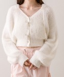 ふわふわとビジューのリボンがかわいいカーディガン♡ 同素材のキャミソールとアンサンブルで着るのがオススメです◎