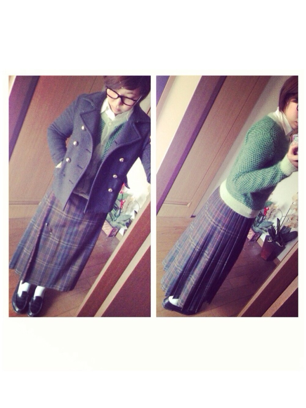 カーディガンはフランスで買ったもの♥︎ シンプルな格好だからこそプリーツのスカートが目立ってかわいい(^ ^)