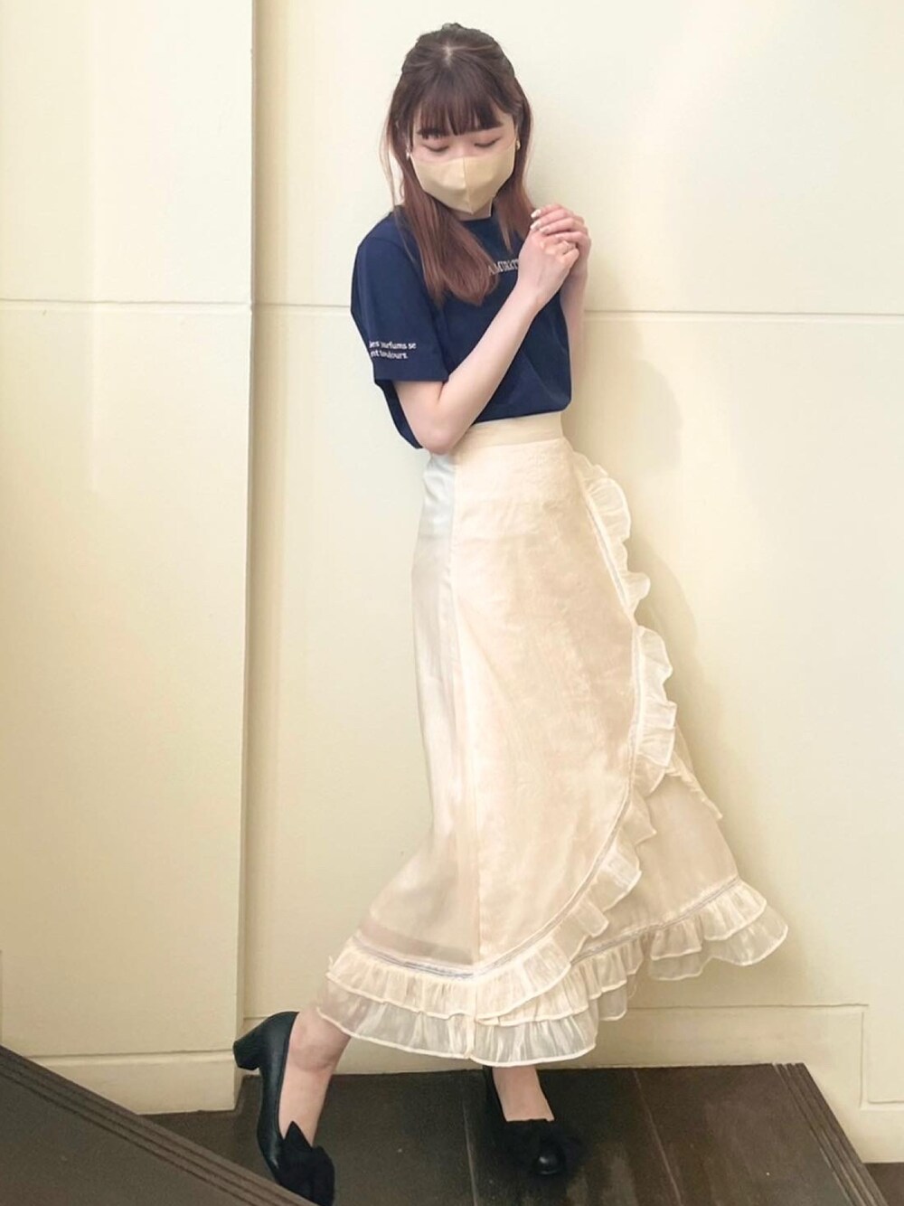 軽い素材でデザインが可愛いスカートが主役🤎 All Miro amurette item ・MIRO AMURETTE TEE ・PALE LADYCHIFFON "SKIRT VER."(S) ・MIRO BALLET SHOES instagram @miro_amurette/@j__rubyuka
