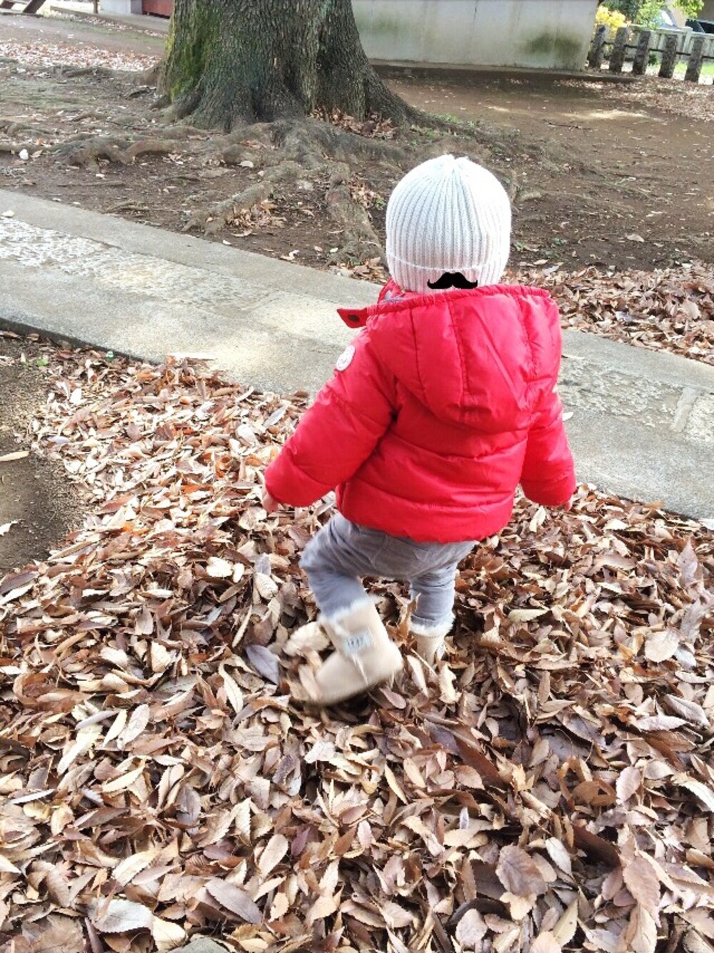 腸炎でヘロヘロだった息子 近所の神社で、葉っぱを蹴散しております。