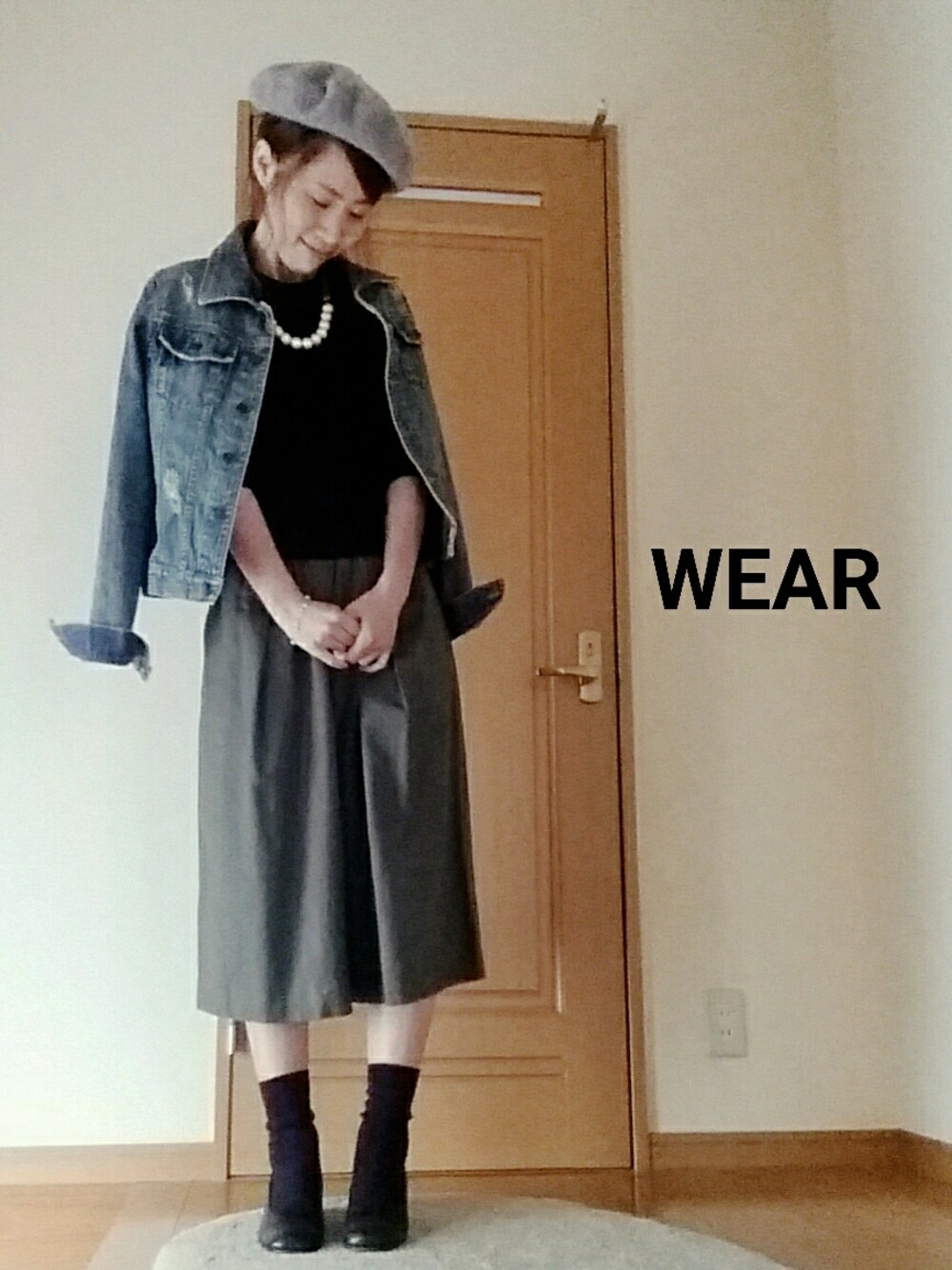 1度やってみたかった、 ブラック×カーキーコーデ♡ #手をどうしたらいいのかわからず 困ってるの図 #ベレー帽被り方なんか変やけど…… まーいっか こんなコーデに合う 靴と時計とパールのイヤリングと…… いろいろ欲しいな(*¯ω¯*)♡ #優先順位がつけれない…… #誰かつけて♡