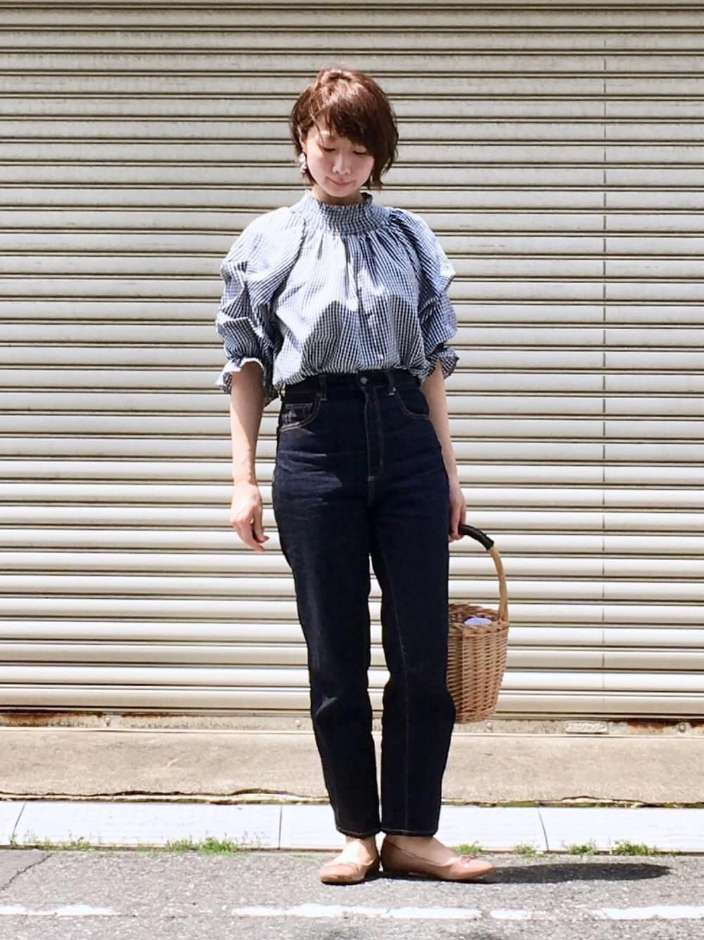 ☺︎由佳☺︎のシャツ/ブラウス「ボリュームスリーブギンガムBL」を使ったコーディネート